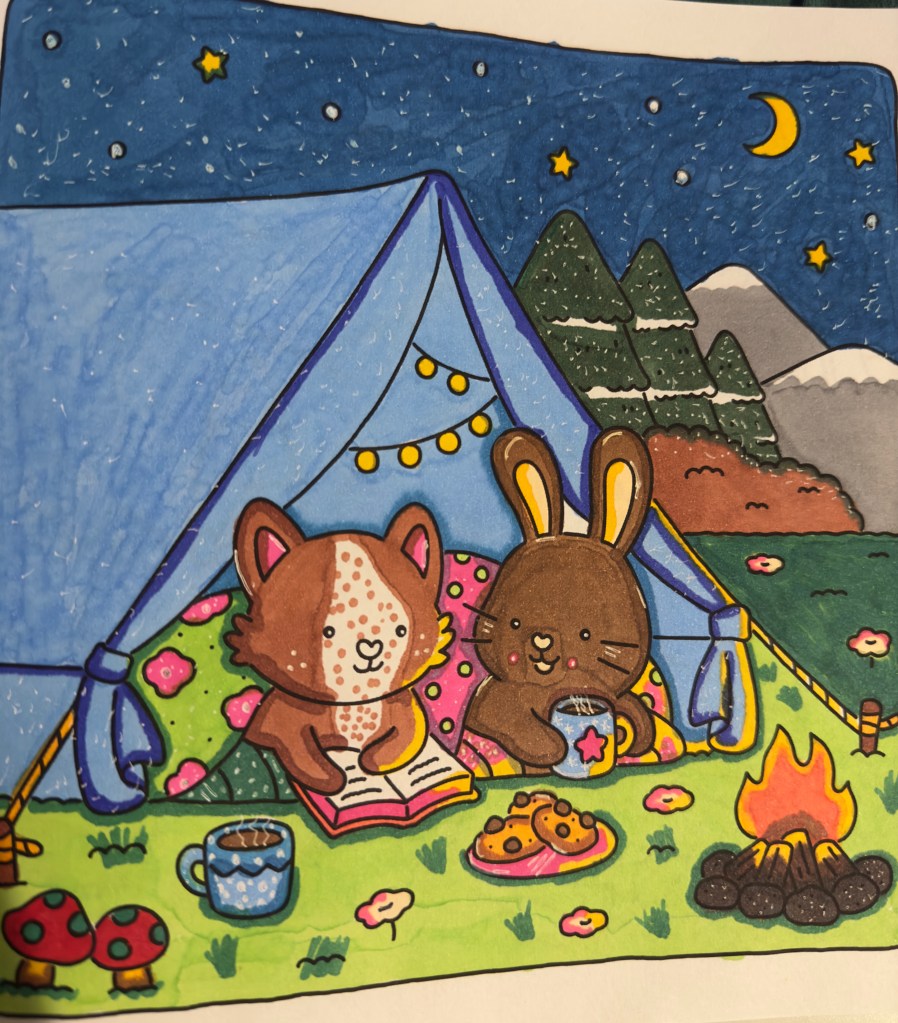 Do not underestimate the power of a cup of your fave drink, a warm blanket, fireplace going (or YouTube version☺️), and some lofi, jazz or Christmas music playing softly, with a good colouring book. Colouring is one of my fave past times to this day and I encourage you to give it a try if you haven’t as yet. I recently got into “cozy colouring” which features books from Vivi Tinta and Coco Wyo. The image above is from Fuzzy Hygge colouring book by Vivi Tinta. I’m learning new techniques of highlighting, lighting and shadow work and it’s been such a treat implementing these in my colouring. When I’m not colouring in my physical book, I.m doing it on my iPad through the Happy Colour app.